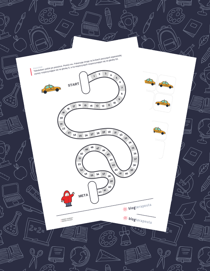 Zestaw zawiera 9 różnych kart pracy. Znajdziecie w nich zadania rozwijające grafomotorykę, logiczne myślenie, orientacje przestrzenną, percepcję wzrokową, szereg syczący i szereg szumiący.